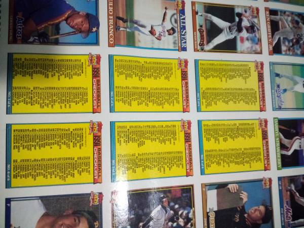 Uncut sheet of 132 cards, Topps from 90/91, $40, Bean Station