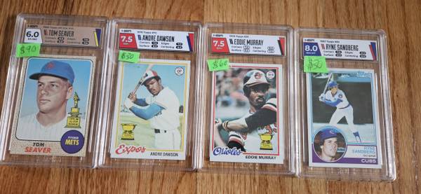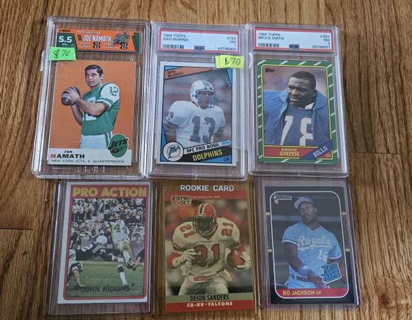I am selling a large collection of sports cards. Some graded. See pics. Contact me for prices. Also, inquire regarding other available cards. Many stars, rookies, and HOF players.