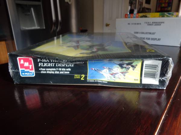 Up for sale is an AMT / Ertl release of an F-16A Thunderbird Flight Display kit. Four Complete F-16A model kits with clear display disc and base. Listed as used because of the storage wear to box....