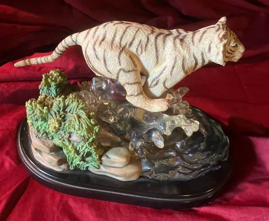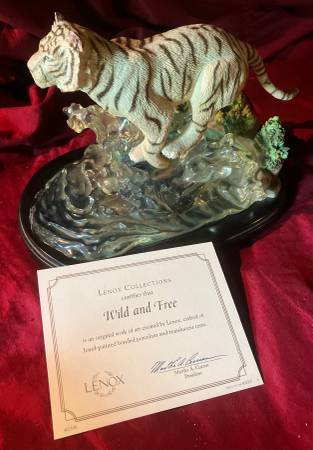 Lenox Collection “Wild and Free” White Tiger running through water Includes Certificate