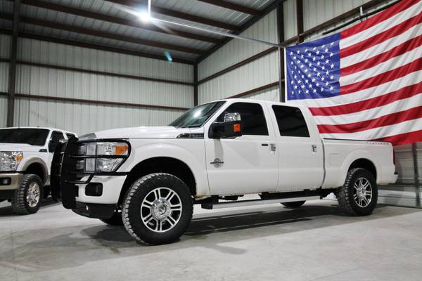 This 2016 Ford F-250 Platinum 4x4 is a one-owner Texas truck with a clean Carfax and detailed service history, powered by the 6.7L Powerstroke diesel paired with an automatic transmission and electronic four-wheel drive, showing 164k miles. It’s leveled and rides on brand new 35” all-terrain tires, finished in the highly sought-after Pearl White Platinum paint and equipped with a Ranch Hand grille guard and factory running boards. The bed has never had a hitch, showing light use, and the truck is loaded with the Platinum package featuring the extremely desirable Pecan leather interior. Inside, you’ll find dual power heated and cooled seats, heated steering wheel, rare heated rear seats, power adjustable pedals, fixed center console, factory touchscreen radio with navigation and backup camera, sunroof, upfitter switches, electronic 4x4, and a built-in trailer brake. Additional features include power mirrors, power windows, and power locks, making this Platinum Super Duty a clean, hard-to-find, and fully loaded truck that’s ready to impress.