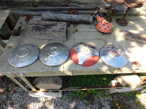 3. 4 v dub hubcaps. one has paint on it that looks like the front end of a bus ( easy removed) sorry i dont know the year