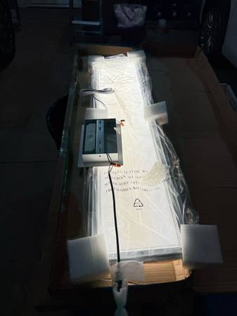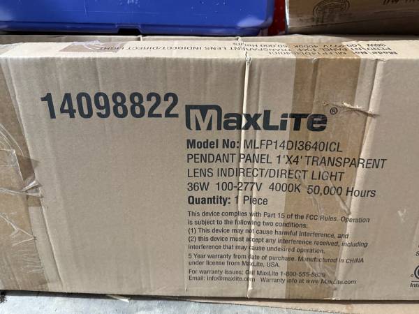 Brand new. Two lights total .The Direct/Indirect pendant is a unique product offering which provides a 70:30 split of light between the direct surfaces below and the ambient area above the fixture. The fixture provides both functional light and a design statement to any space where it is utilized. The unique design is nearly transparent luminaire when off and excellent uniformity and efficiency when on. The 1’x4′ suspended Direct/Indirect pendant is a commercial lighting fixture utilizing an advanced LED optical system to achieve superior performance.