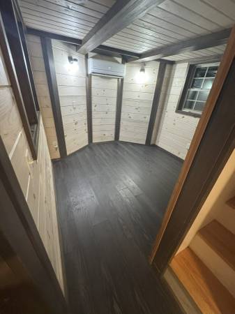 This tiny home is 10 feet wide by 30 feet long. It was custom built in 2021 by Incredible Tiny Homes. It is permanently constructed on a trailer frame for periodic moving. It has a separate living room and bedroom, plus double lofts upstairs for sleeping and storage. The lot lease for this home is ending, so they buyer will need to move it to a new location.