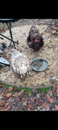 Orpington hens and roosters. I believe I have 10 total. And I think there are five roosters and five hens. Some are chocolate orpington some are chocolate lace orpington about half of them are from this year. The other are 2-year-olds. Asking $45 a pair that's for a hen and a rooster pair .Or $180 for all 10.
