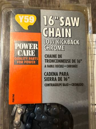 Power Care 16'' Saw Chain Y59 is a new high-quality chain designed for saw brands such as Remington, McCulloch, John Deere, and Homelite. It has 59 drive links and a 5/32'' file size (4.0mm), making it compatible with chainsaw models like Homelite Super 2, XL, XEL, and 240.
