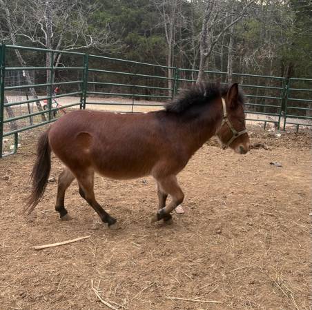 I have a 5 year old miniature male hinny. He has been with goats, cows, horses and pigs. Currently he’s only with horses. He leads, loads and stands for the farrier. If interested send me an offer
