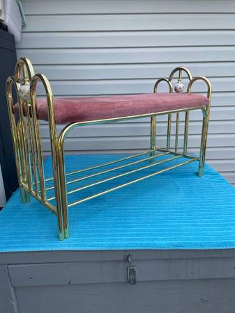 BEAUTIFUL VANITY SITTING BENCH, W. 40IN. X D 15. IN. X H. 18IN. TO SEAT , WOULD BE GREAT TO USE AT A MAKE - UP TABLE OR JUST HAS A DECORATIVE PIECE, $50.00 AND THANKS FOR LOOKING
