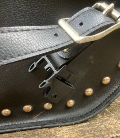 Two snaps secure top flap, two buckles and/or quick release clips open each bag, inside top protective flap with a snap, large compartment with 2 side pockets, heat protection sheet on backside n bottom, mounting hardware included 18”L x 7”W x 12”H