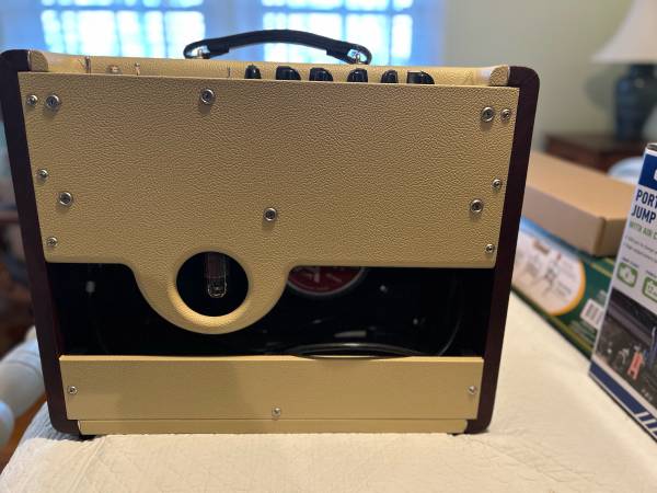 8 watt class A 12” Celestion speaker 1- EL34, 2- 12AX7, 1- 12AT7 Controls volume, treble, bass & boost. Built in 4 stage attenuator 8W / 2W / 1/2W / 1/10W hardwired in North Carolina burgundy & cream tolex. Includes a free stand & cord, excellent condition with minimal wear. One the most iconic boutique amps ever made! Local pickup only
