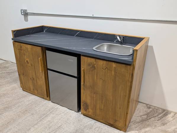 Kitchen cabinet with counter top, sink and faucet. Great for small apartment, garage, mancaves, covered decks... Nice new units. Several available. Refrigerator Not Included Made of solid furniture...